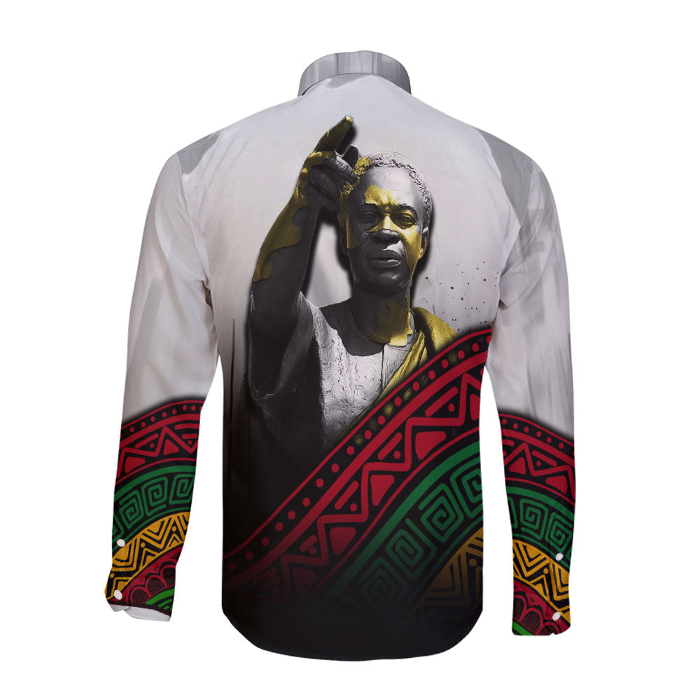 Black History Long Sleeve Button Shirt, Forward Ever Backward Never African Pride Long Sleeve Button Shirt