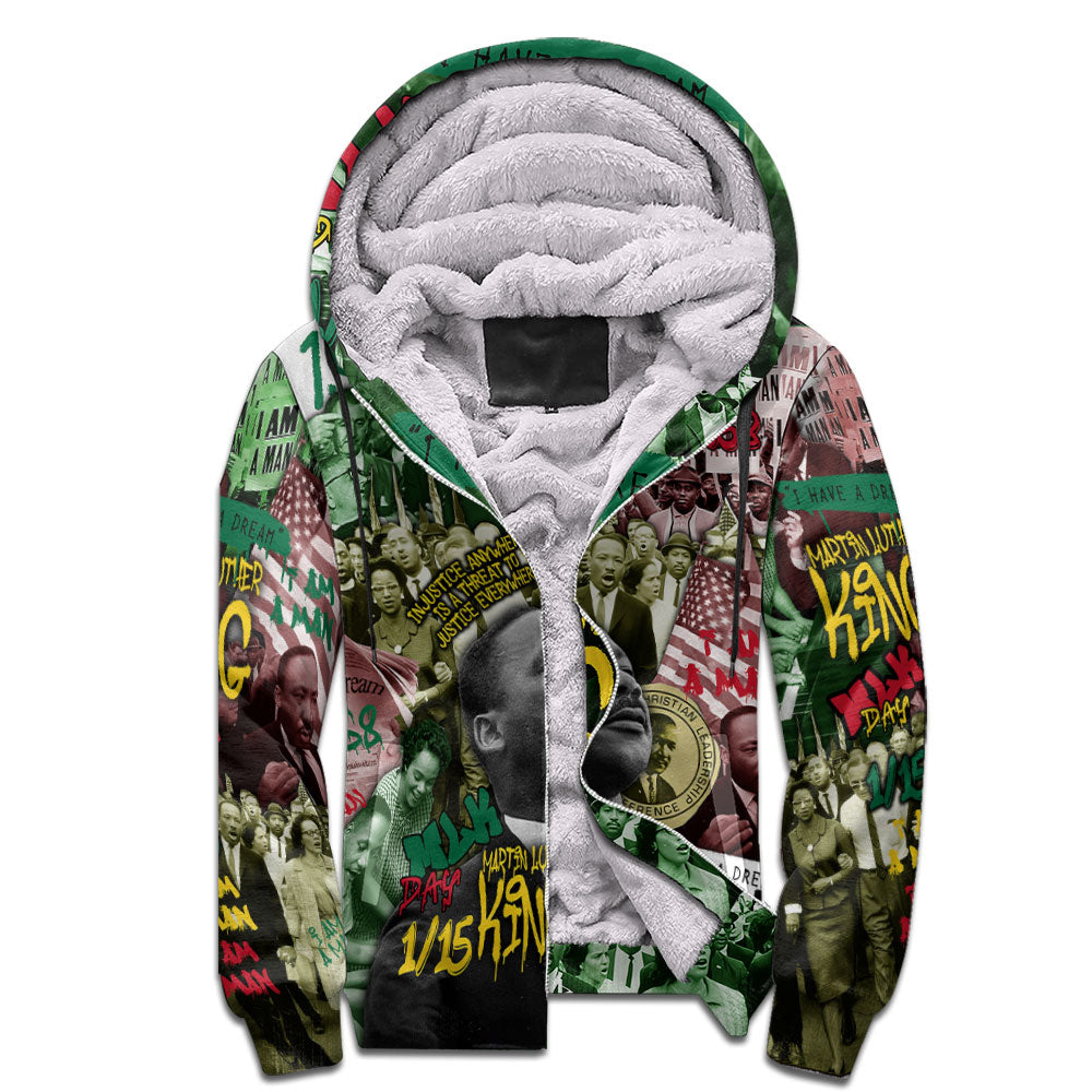 Embrace warmth and style on chilly days with our custom printed sherpa-lined hoodie.