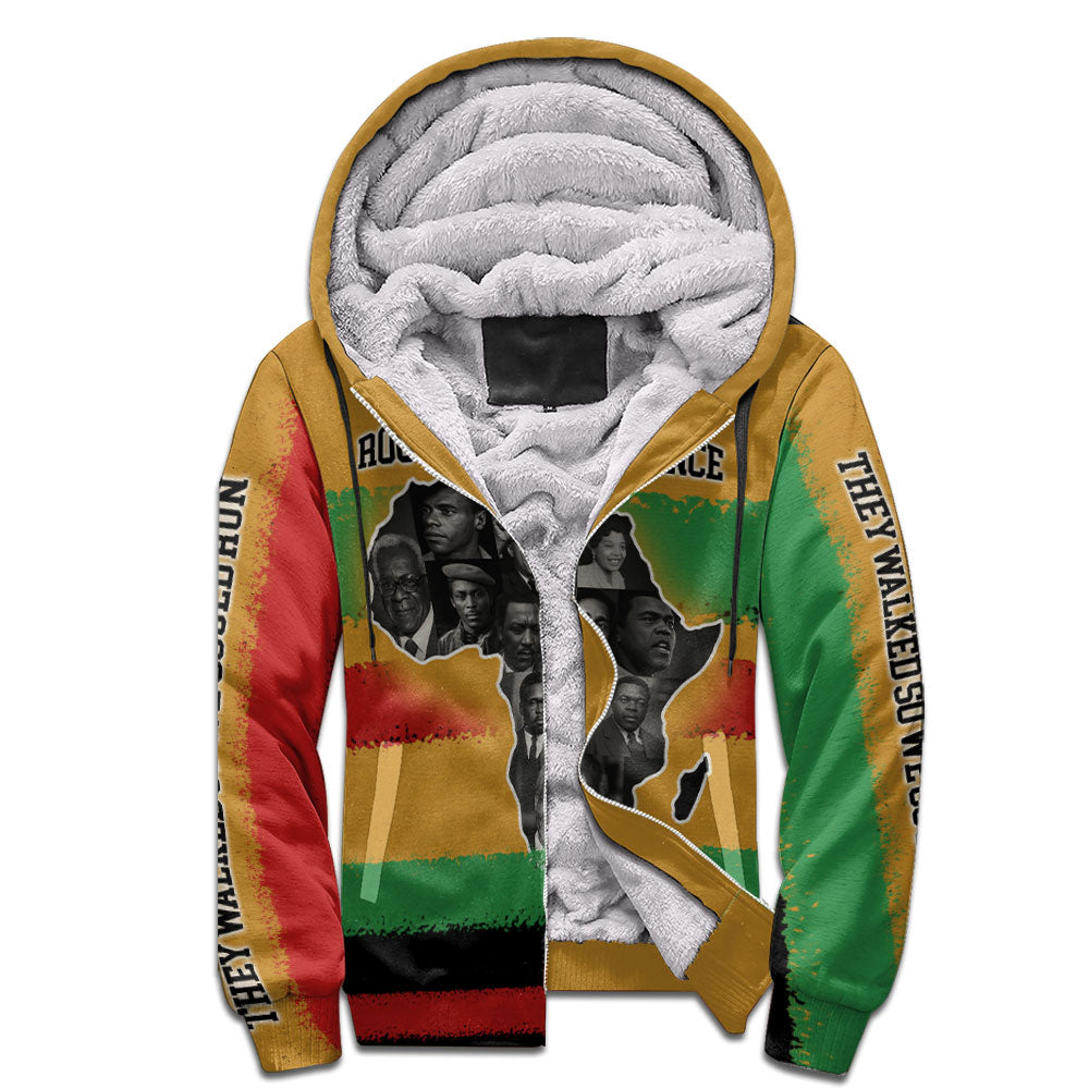 Embrace warmth and style on chilly days with our custom printed sherpa-lined hoodie.